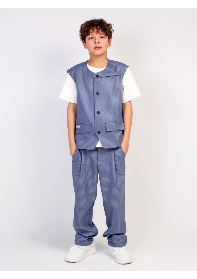 случаев. Комплект включает жилет и брюки свободного кроя, которые обеспечивают