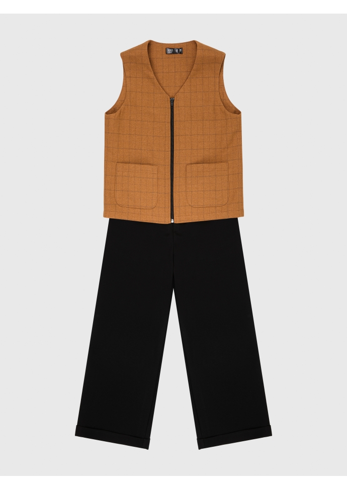 Жилет, брюки широкие. Костюм горчичного цвета, в комплект которого входят: жилет, брюки. Одно из главных преимуществ этого костюма - его универсальность. Приобретая данную модель, вы не пожалеете, изделие имеет возможность регулироваться в объеме и длине, поэтому даже с учетом роста ребенка, костюм может быть использован достаточно длительный период. В состав ткани входит натуральная вискоза, что позволяет пропускать воздух, а коже ребенка дышать. Материал подклада так же натуральный, поэтому вы можете не беспокоиться за экологичность и безопасность изделия. Ткань костюма достаточно плотная, чтобы сохранять цвет и форму после многочисленных стирок. Жилет регулируется пряжкой, что обеспечивает отличную посадку на любой тип фигуры, внутренняя резинка на пуговках брюк обеспечивает регулировку объема по талии. Так же брюки имеют манжет, что позволяет удлинить изделие.