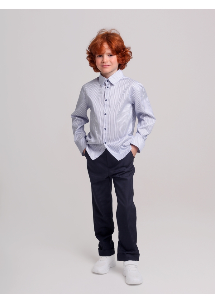 Рубашка белая в полоску. Стильная рубашка на мальчика на пуговицах. Классическая рубашка подходит для школы, на торжественный случай, удобна в межсезонье и летом. Изделие выполнено из качественной ткани из хлопка, что позволяет ребёнку чувствовать себя комфортно. Классическая белая рубашка с длинным рукавом хорошо сочетается с брюками, костюмом, жилетом, а также с джинсами. В гардеробе каждого школьника белая рубашка найдёт сочетание с любым цветом одежды.