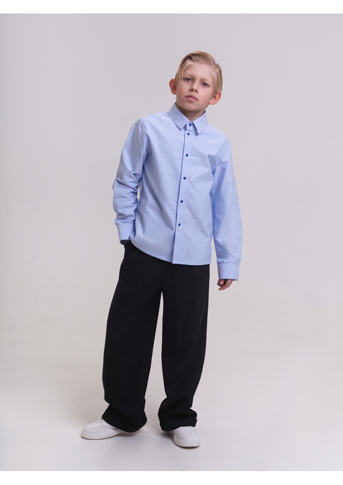 Рубашка голубая. Стильная рубашка для мальчика на пуговицах. Классическая рубашка подходит для школы, на торжественный случай, удобна в межсезонье и летом. Изделие выполнено из качественной ткани из хлопка, что позволяет ребёнку чувствовать себя комфортно. Классическая голубая рубашка с длинным рукавом хорошо сочетается с брюками, костюмом, жилетом, а также с джинсами. В гардеробе каждого школьника голубая рубашка найдёт сочетание с любым цветом одежды.